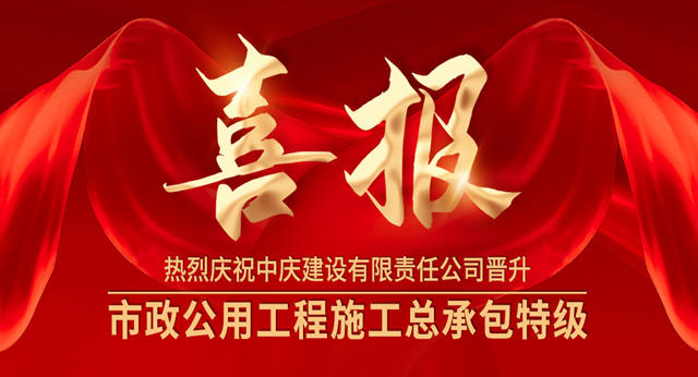 成功升特!中慶建設有限責任公司獲批市政公用工程施工總承包特級資質